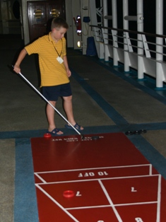 Our sea days were spent exploring the ship, participating in art auctions, and after we discovered it, playing shuffleboard.
