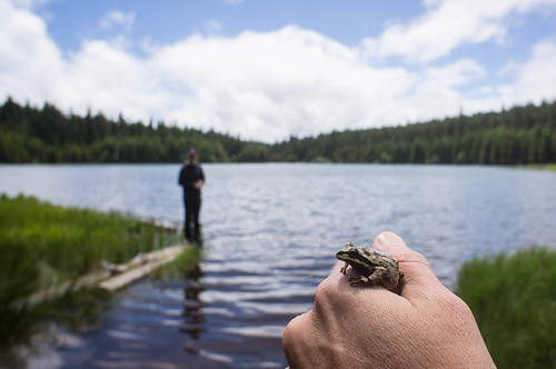 The five of us discussed and agreed that we'd rather extend our hiking on Saturday and not spend another night out. Rain was still likely at this point. I didn't want to return the same way we came in, so we improvised and created what we are calling the Four Lakes Trail. Using a mix of hiking trails, 4x4 roads, and paved park roads we managed to work our way back to the parking lot by visiting Little Crater Lake, Clear Lake, and Frog Lake.